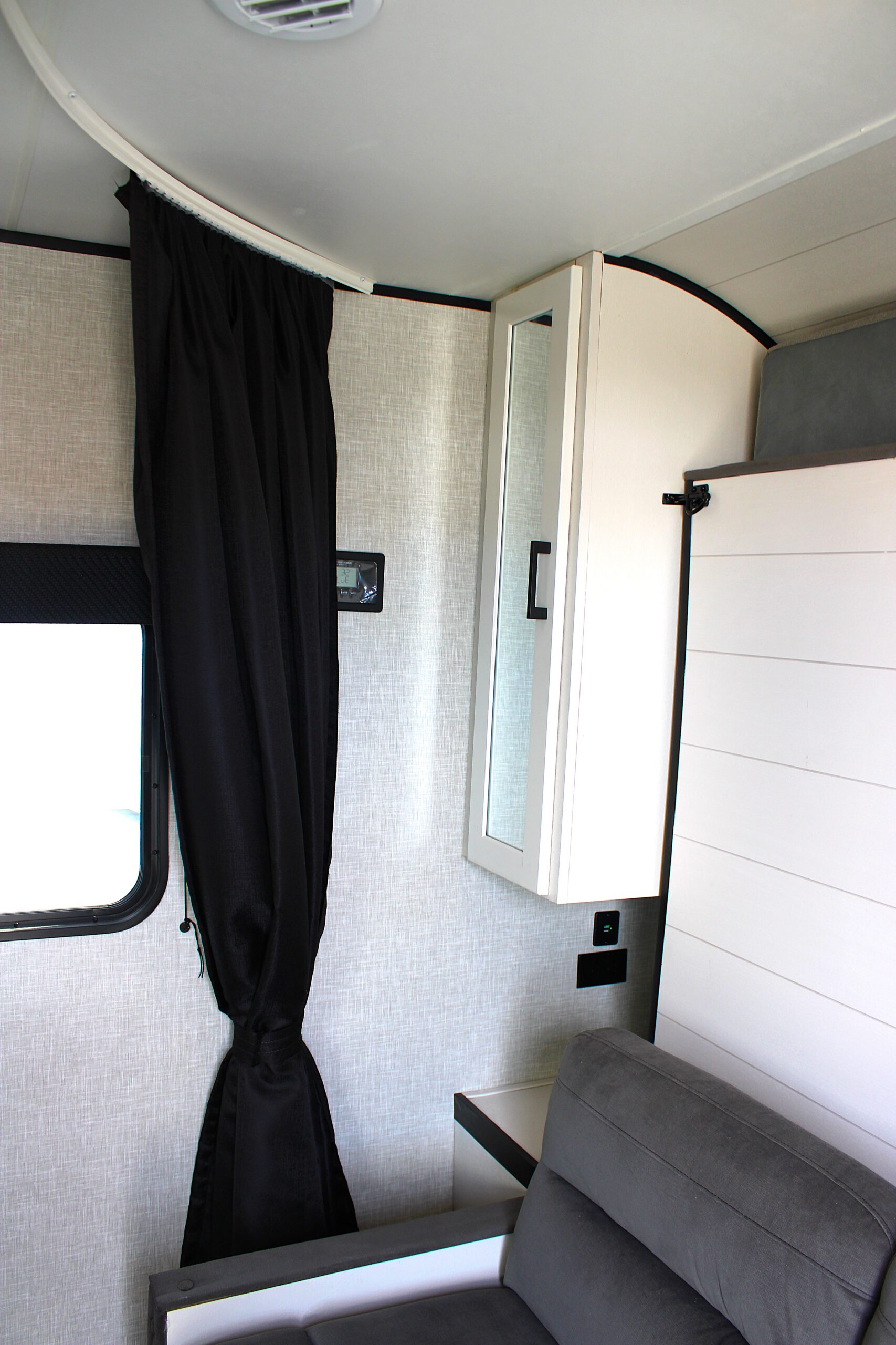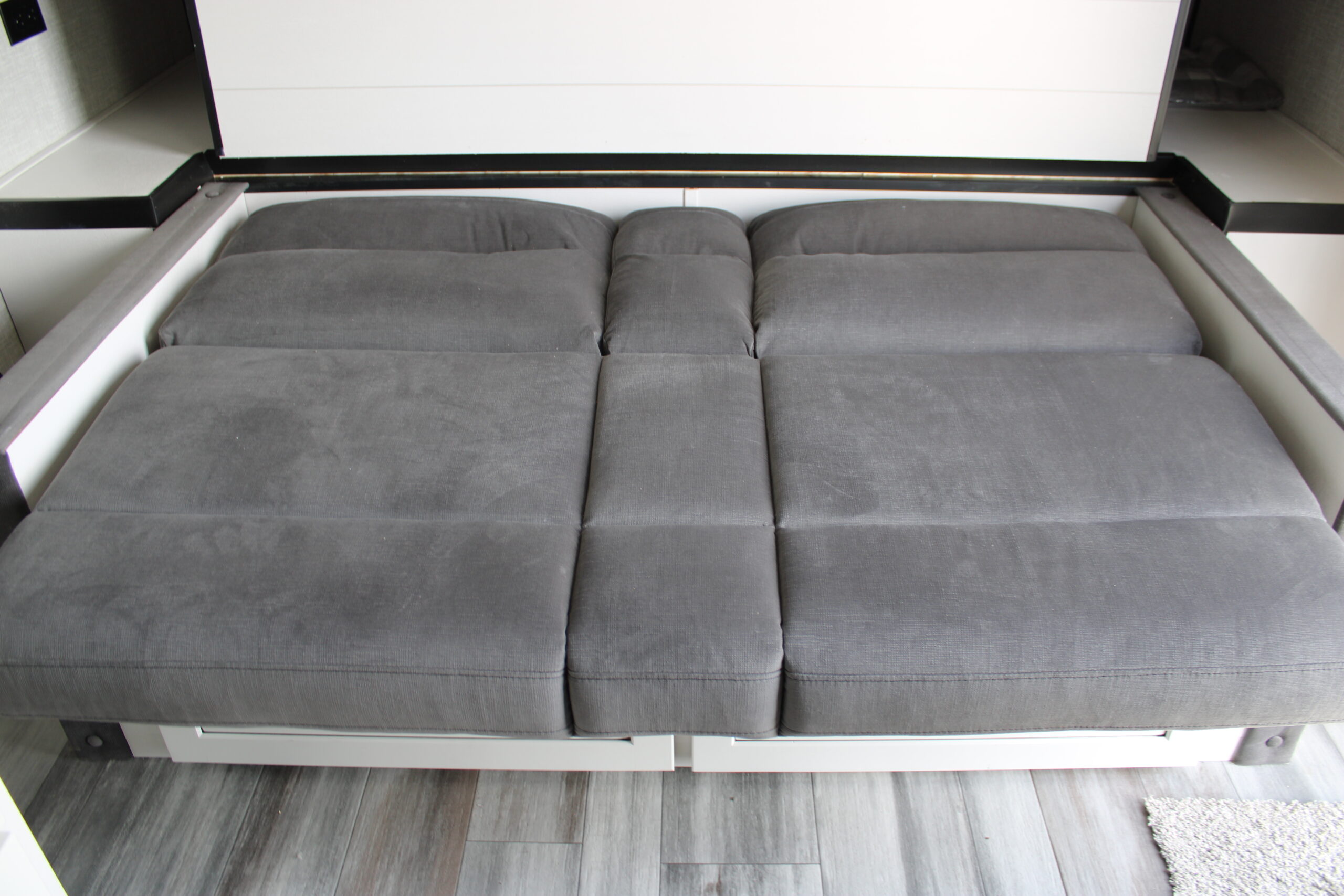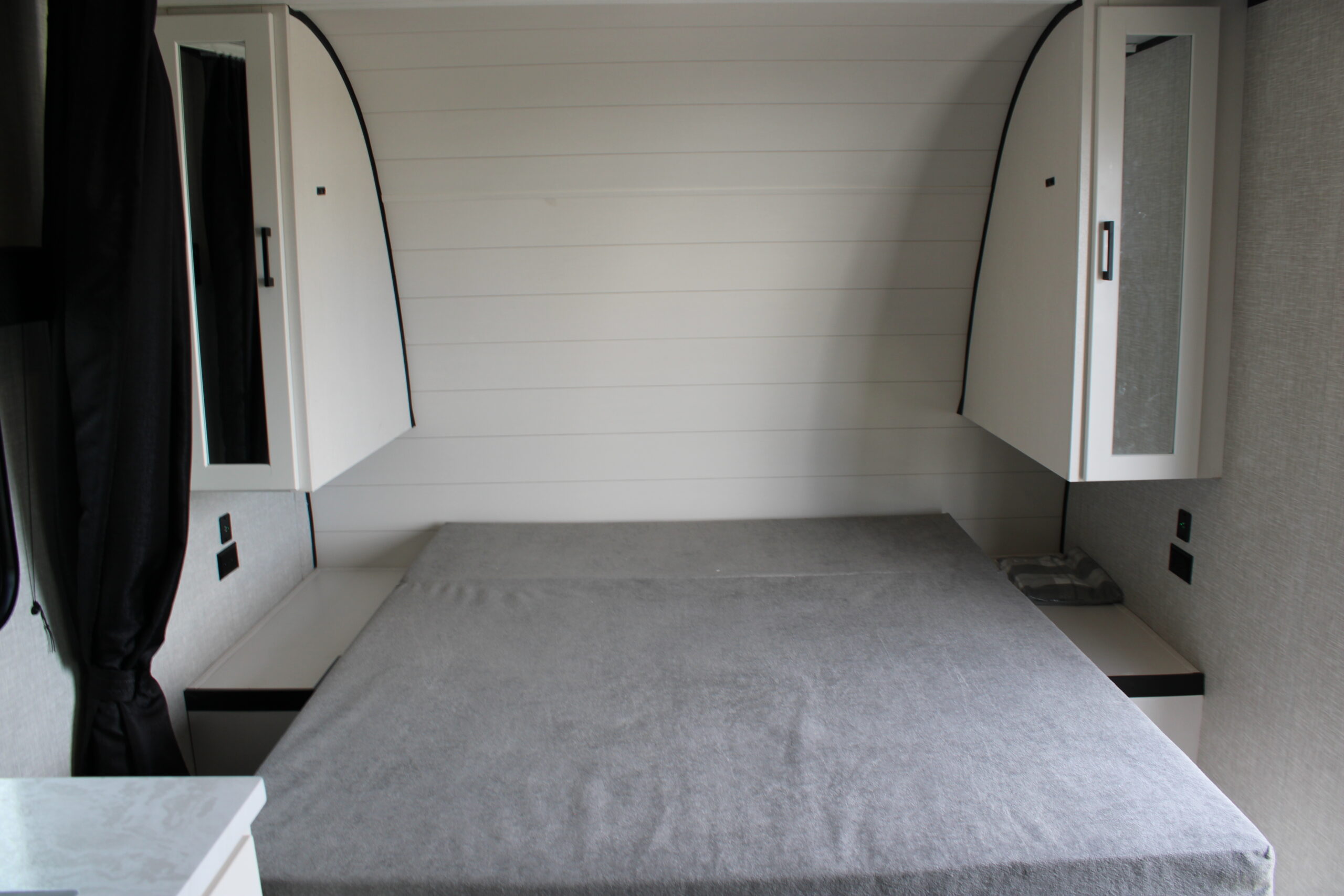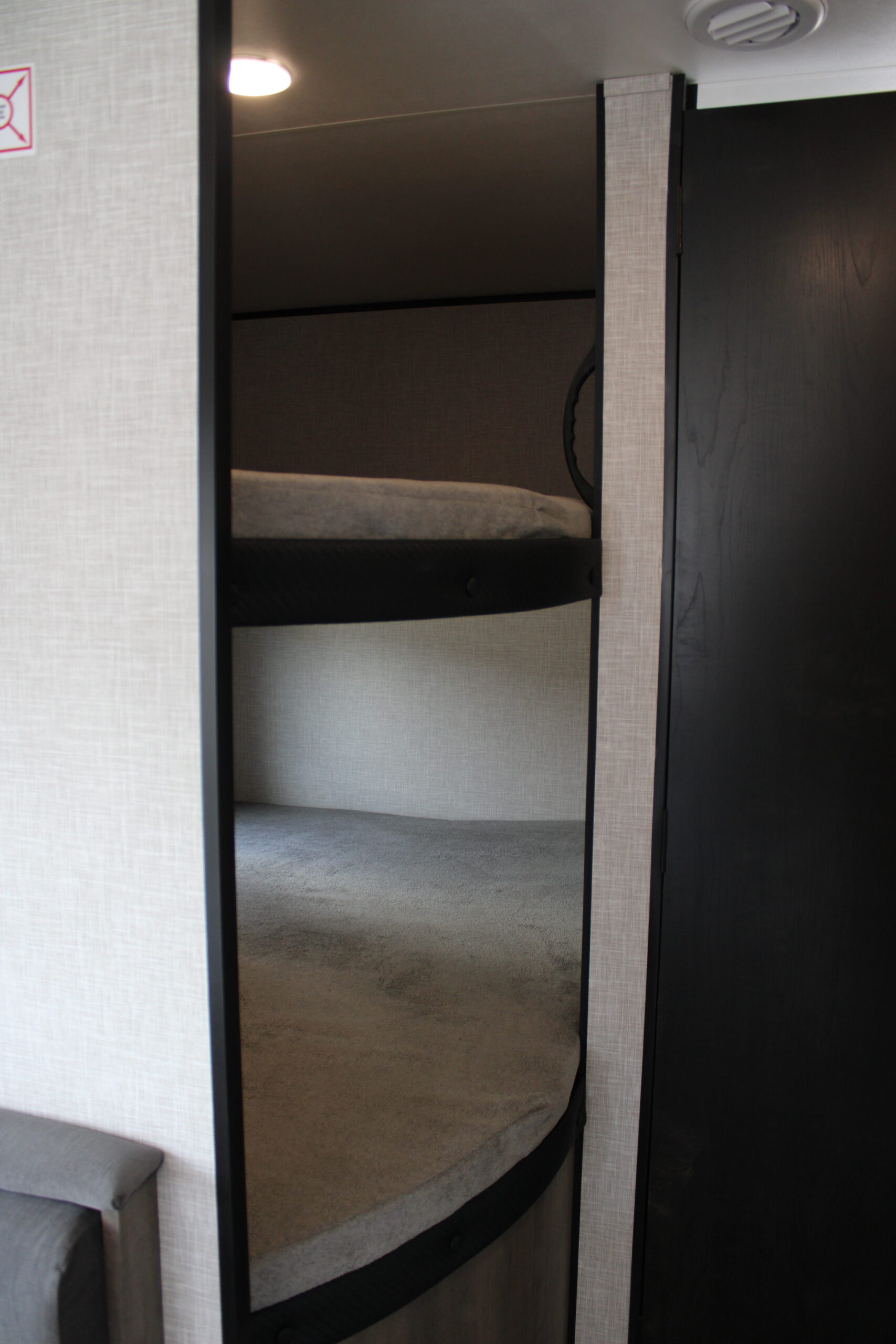 | 8,000 BTU wall mount A/C (single axle models) | 600 lb. rated double bunk beds | 8 cu. ft. 12V refrigerator |