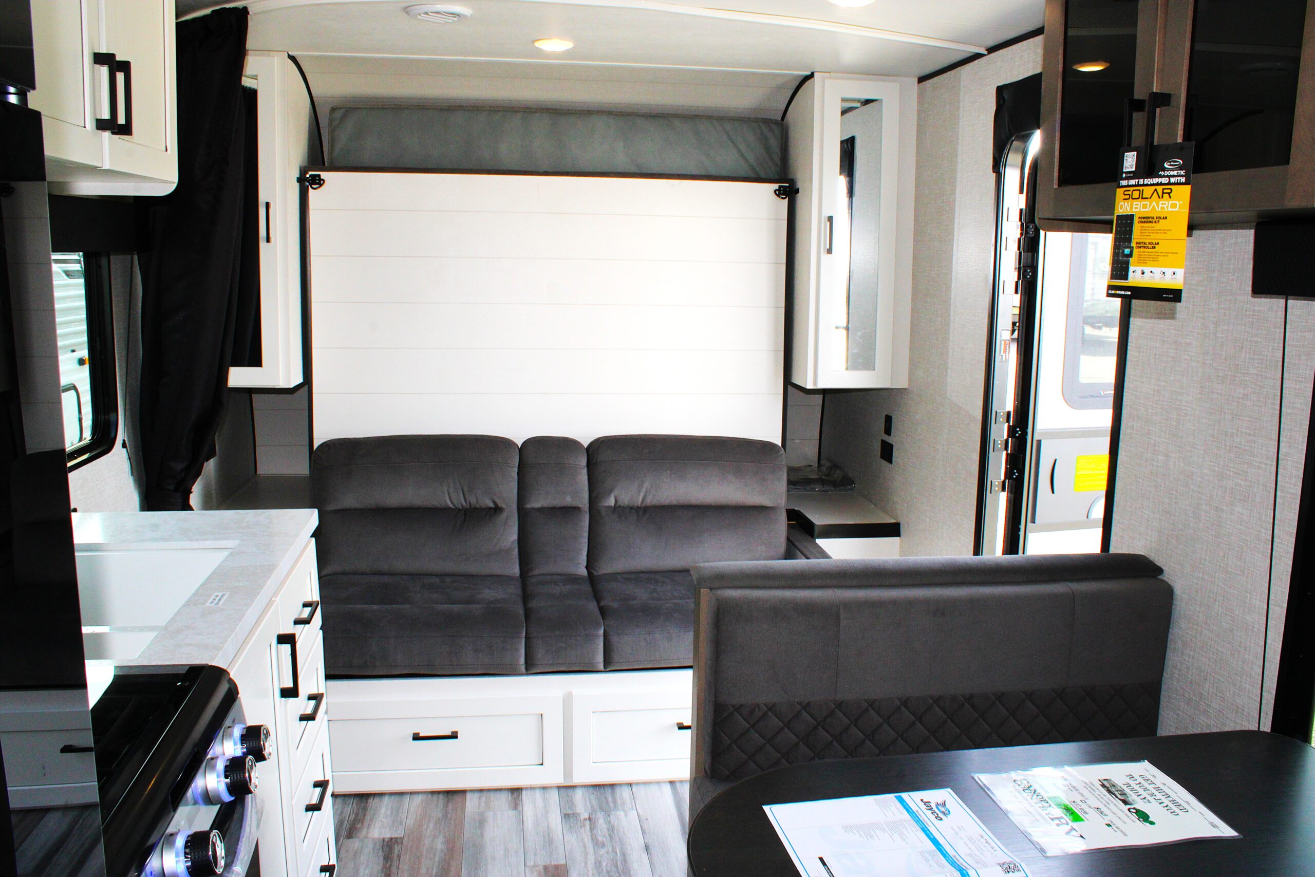 We know you spend most of your time outside, but for those nights and certain days you spend inside, you’ll still be able to enjoy excellent views, thanks to the Jay Flight’s innovative oversized G20 dark-tinted windows. The dark-tinted windows aid in keeping UV rays and the heat at bay, and add privacy. Even the entry door consists of a window (which you’d be hard-pressed to find in other brands). In the Jay Flight SLX, you can have it all–comfort, convenience, and superior design–in a compact, amenity-packed package.