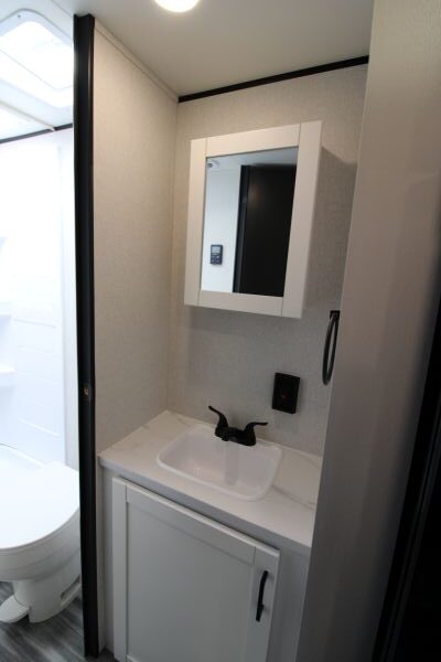 After a long day of exploring, step inside to enjoy instant hot water from the on-demand tankless water heater—up to 60,000 BTU in standard models and 42,000 BTU in the Sport Edition—so you can clean up comfortably, just like at home. Oversized G20 dark-tinted windows flood the space with natural light while blocking heat and UV rays, giving you both stunning views and added privacy.